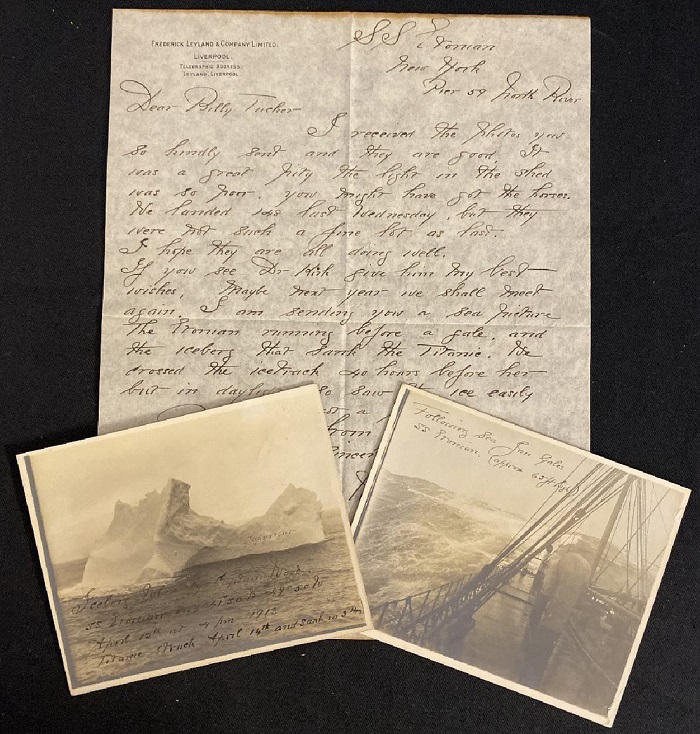 Cuando el marinero llegó a Nueva York, hizo revelar la foto y envió una copia a su bisabuelo junto con una carta en la que afirmaba que se trataba del mismo iceberg contra el que chocó el Titanic. "Te envío una foto del mar, el Etonian navegando ante un vendaval y el iceberg que hundió el Titanic", reza la misiva. "Cruzamos las pistas de hielo 40 horas antes que él y a la luz del día, así que vi el hielo fácilmente y conseguí una foto", agregaba.