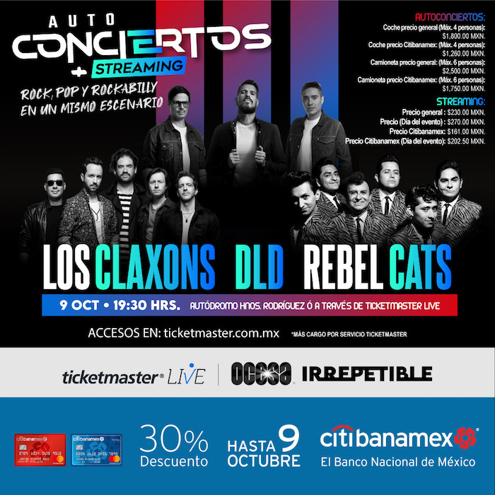DLD, Los Claxons y Rebel Cats llegarán al Autódromo Hermanos Rodríguez para hacer gozar de un par de horas de música en vivo a sus asistentes, sin embargo para quienes no quieran o no puedan asistir en esta nueva modalidad, Ocesa transmitirá el evento a través de la plataforma Ticketmaster Live.