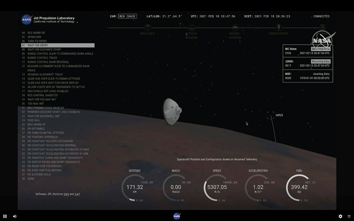 "Qué equipo tan increíble para trabajar a través de todas las adversidades y desafíos que conlleva el aterrizaje de un rover en Marte, además de los desafíos de COVID", señaló poco después del amartizaje el administrador interino de la NASA Steve Jurczyk.