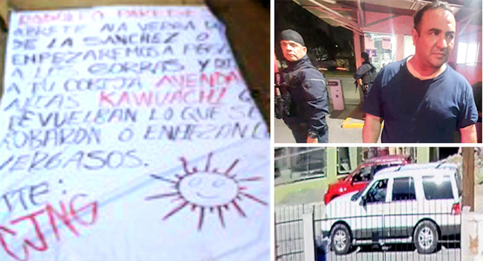 “Esto me pasa por Raya sigues tu Jose Marino Acosta Jiménez y Juan Carlos Acosta Jiménez y al culón del Contreras atte CJNG”. Ambos mencionados nacieron en Veracruz y son policías que ingresaron a la corporación municipal de Tijuana en 2008.