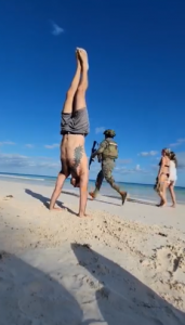 Según los mensajes, dos elementos del Ejército mexicano perseguían a un supuesto narcomenudista en las playas de Tulum y el cual fue grabado de forma imprevista por el maestro de yoga estadounidenses que se encontraba de visita en el país.