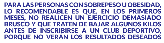 Además, ten en cuenta que, mientras más actividad física realices, más hambre tendrás y, de hecho, las personas que están en la línea deben aumentar su ingesta calórica para no descompensarse, o sea, deben comer más, pero balanceado. Para las personas con sobrepeso u obesidad, lo recomendable es que, en los primeros meses, no realicen un ejercicio demasiado brusco y que traten de bajar algunos kilos antes de inscribirse a un club deportivo, pues pueden desencantarse al primer mes de no ver los resultados esperados. La paciencia antes de sumergirse en rutinas de fuerza que promuevan el rápido crecimiento muscular es muy aconsejable. A medida que se vayan acercando más a su peso meta saludable, mediante una dieta equilibrada y ejercicio de baja intensidad, será el momento para que emprendan otro tipo de ejercicios más intensos.