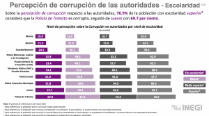 "De todas las instituciones y las autoridades por las que se pregunta, solamente tres tienen percepciones menores al 50 por ciento, el resto de las autoridades incluidos los jueces tienen niveles de percepción de corrupción mayores al 50 por ciento".