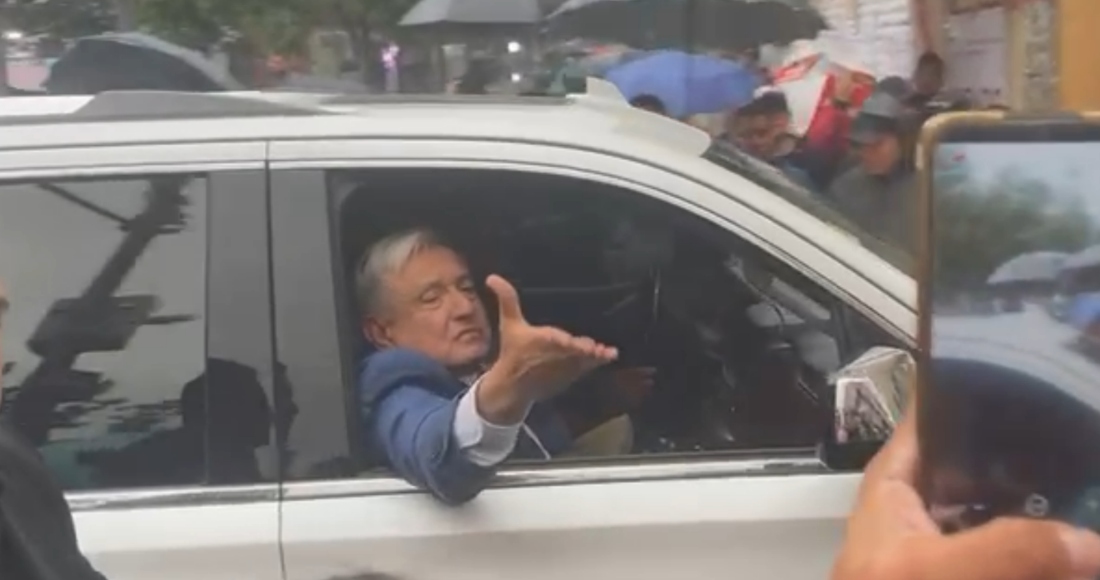 López Obrador salió del Palacio Nacional entre docenas de seguidores que, a pesar de la lluvia, se reunieron para despedirlo y mostrarle su apoyo.