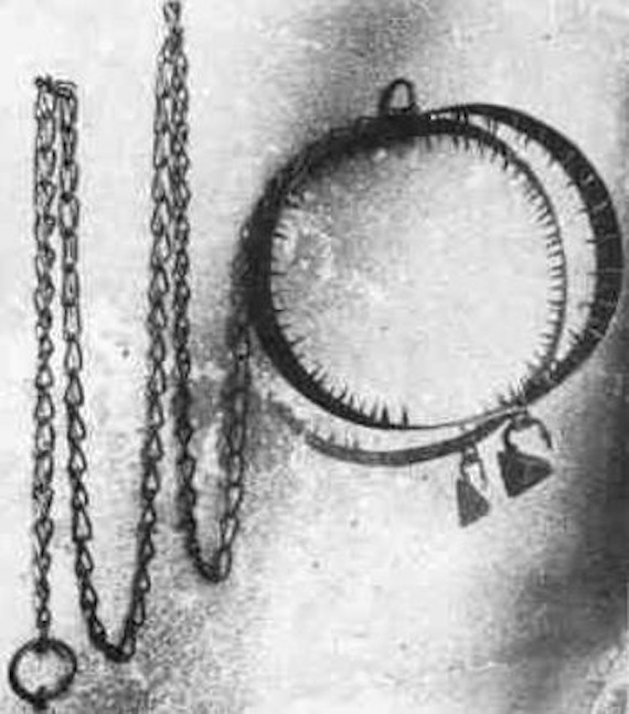 Consistía en un collar, cinturón o brazalete provisto de pinchos en la cara interior y que se le pone al reo. Con cada pequeño movimiento (incluso la respiración) el collar araña e hiere la carne. El proceso de tortura es progresivo: en primer lugar, un dolor lacerante. Posteriormente se produce la infección, tras la cual se llega a la putrefacción y tras ésta, una gangrena que puede causar la defunción.
