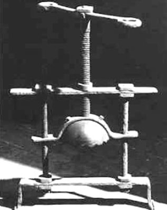 Un utensilio en el cual introducían la cabeza del prisionaro y mediante un rodamiento le apretaban la cabeza por arriba , mientras que por abajo estaba el tope con su barbilla. Los dientes estallaban o se iban clavando en los huesos de la mandíbulas, los ojos se salían de sus cuencas debido a la presión cuandoel cráneo se rompía y finalmente podía incluso salirse el cerebro por los oídos.