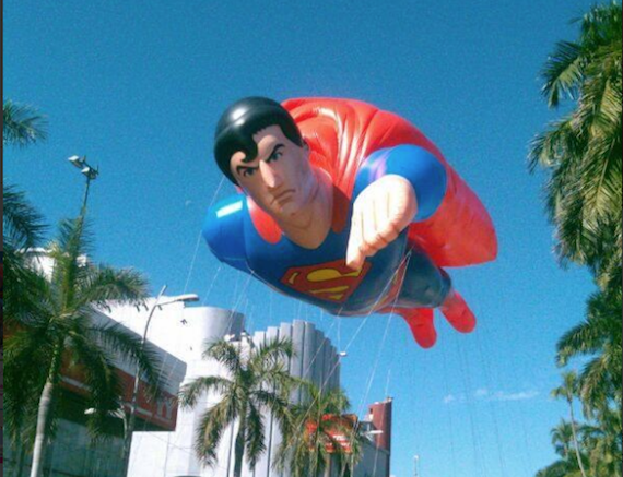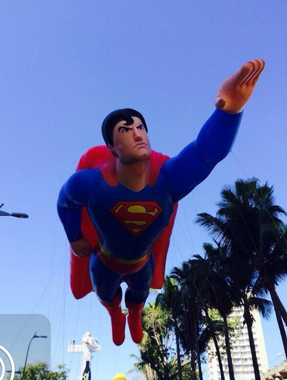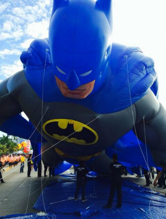 "Mamá, mamá es Batman, está bien grande, mamá, mira, mira que bonito", gritaba un niño a su progenitora al ver pasar al Caballero de la Noche vestido de azul y de más de 20 metros de altura.
