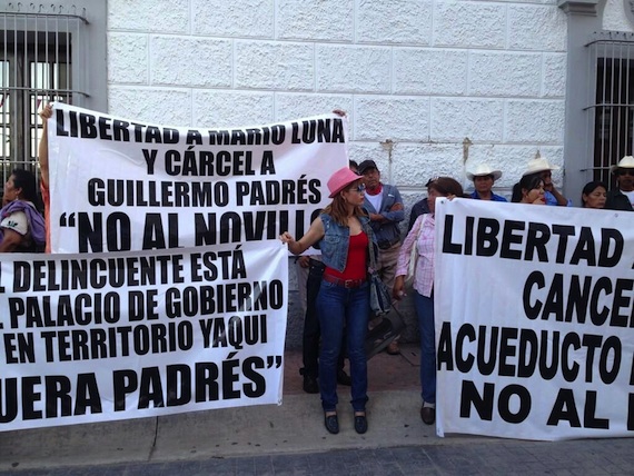 Ciudad de México, 21 de septiembre (SinEmbargo).– El movimiento social "Los Malnacidos" de Sonora, que rechazan las políticas públicas del Gobernador Guillermo Padrés Elías, así como miembros de la Tribu Yaqui, protestaron hoy en Hermosillo, Sonora, por la detención del líder Mario Luna Romero y para exigir que se desmantele el acueducto Independencia, así como una demanda de Juicio Político en contra del mandatario.