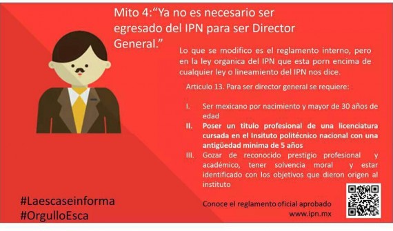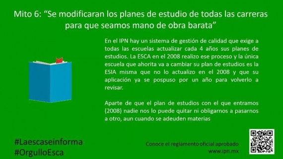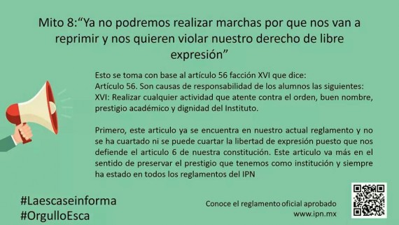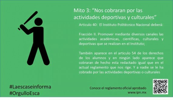 Sin embargo, un grupo de estudiantes del ESCA lanzó una campaña a través de redes sociales en las que menciona "los mitos" del nuevo reglamento y explica las diferencias entre el actual y el que se implementará en 2015.
