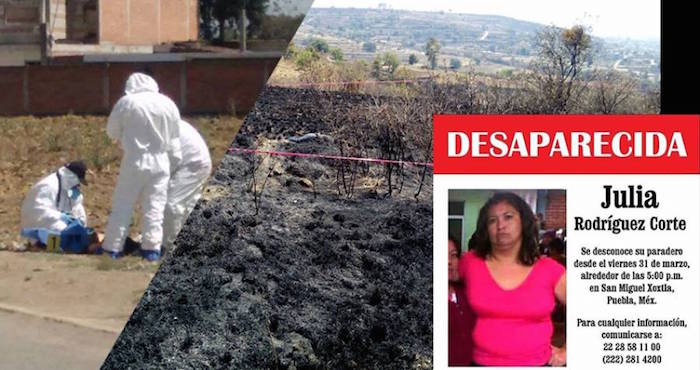 El cuerpo de Julia, de aproximadamente 40 años, apareció maniatado el día 1 de abril en San Jerónimo Zacualpan, Tlaxcala. La mujer desapareció el 31 de marzo luego de salir de su domicilio en San Miguel Xoxtla, Puebla.