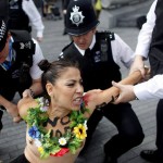 El grupo de activistas ucraniano denominado "Femen" dio de qué hablar en los Juegos Olímpios de Londres con sus peculiares protestas, esta vez las mujeres también conocidas como "Topless Warrior" fueron detenidas por las autoridades londinenses cuando se manifestaban semidesnudas en contra de la ley islámica "Sharia", cerca del Tower Bridge.