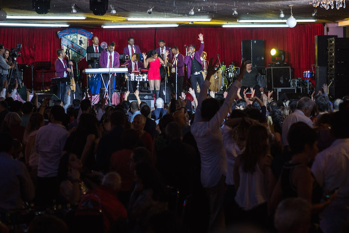 Entre vestidos y lentejuelas centenas de personas, entre ellas Sergio Arau, Susana Harp y Cuauthémoc Cárdenas, acudieron ayer para bailar y festejar al ritmo de Las sonoras Dinamita, Matancera y Santanera, La Orquesta de Pérez Prado y los Reyes de Mambo, quienes ambientaron la celebración de este Salón que fue inaugurado el 29 de julio de 1937 por la familia Nieto.