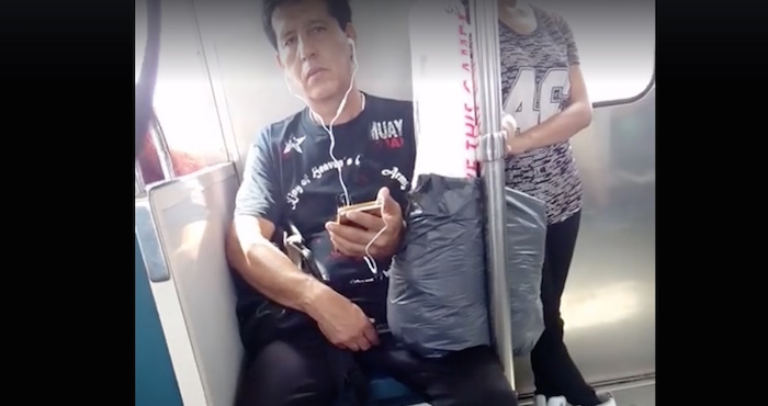 En un video que circula en redes sociales se muestra al presunto agresor poniendo su mano izquierda muy cerca de las piernas de la víctima, quien lo encaró y le ordenó hacerse a un lado.