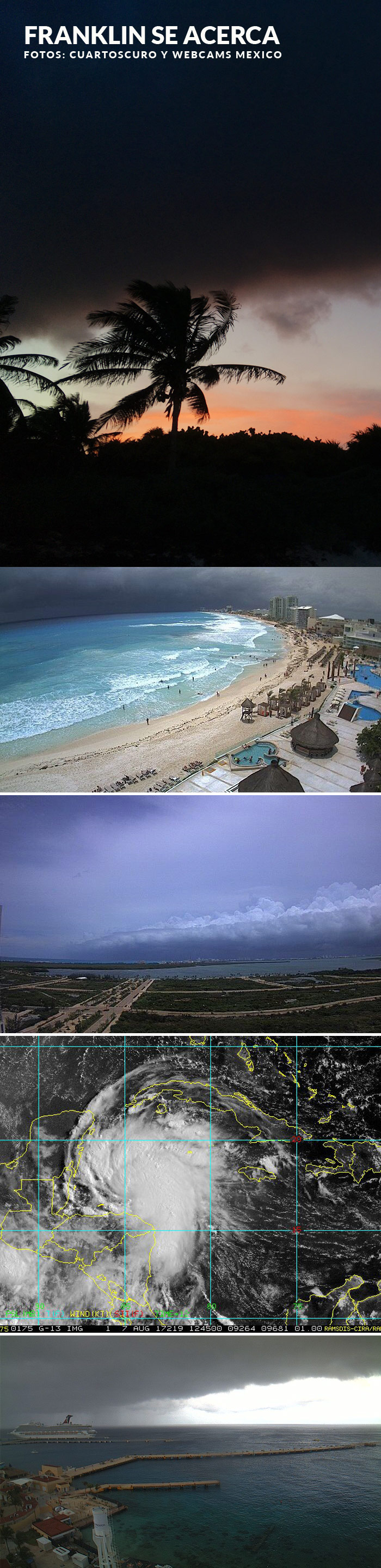 La Comisión Nacional del Agua (Conagua) informó que "Franklin"provocará tormentas torrenciales en Oaxaca, Chiapas, Tabasco, Campeche, Quintana Roo y Yucatán.