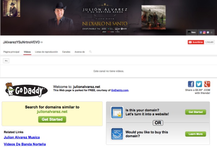Sin alguna razón aparente, la dirección julionalvarez.net, así como su espacio en Vevo (JAlvarezySuNrtnoVEVO), que cuenta con más de un millón 700 mil suscriptores, aparecieron sin ninguna grabación e información del intérprete chiapaneco.