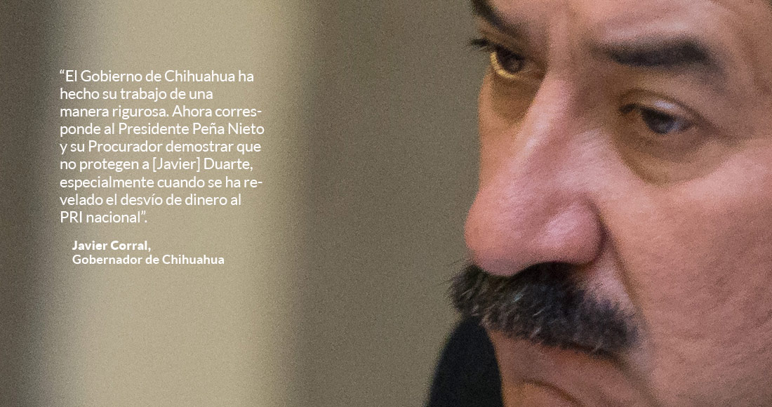El Gobernador Corral ha endurecido poco a poco su postura ante el Gobierno federal. En noviembre pasado, el mandatario se dijo confiado que la administración Peña Nieto actuaría en contra de Duarte Jáquez, pese a que, dijo, tenía información de que era protegido por la cúpula del PRI.