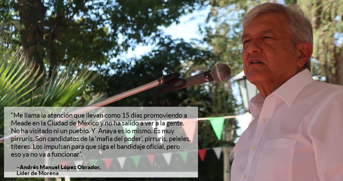 López Obrador, José Antonio Meade y Ricardo Anaya Cortés son parte de la misma “mafia del poder”, que representa un sistema podrido y caduco de los partidos políticos, refirió Rodríguez Calderón.