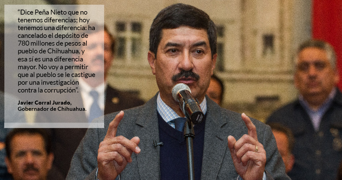 “El Gobierno de Chihuahua ha actuado contra la corrupción, mientras el Gobierno de Peña Nieto actúa contra el pueblo de Chihuahua”, dijo Corral Jurado en su mensaje a medios en la Ciudad de México.