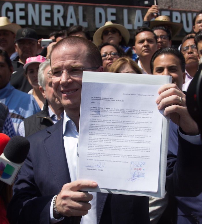 Anaya Cortés llevó una carta a la Procuraduría y estuvo acompañado de líderes del PAN como Diego Fernández de Cevallos, Santiago Creel y el dirigente nacional Damián Zepeda.