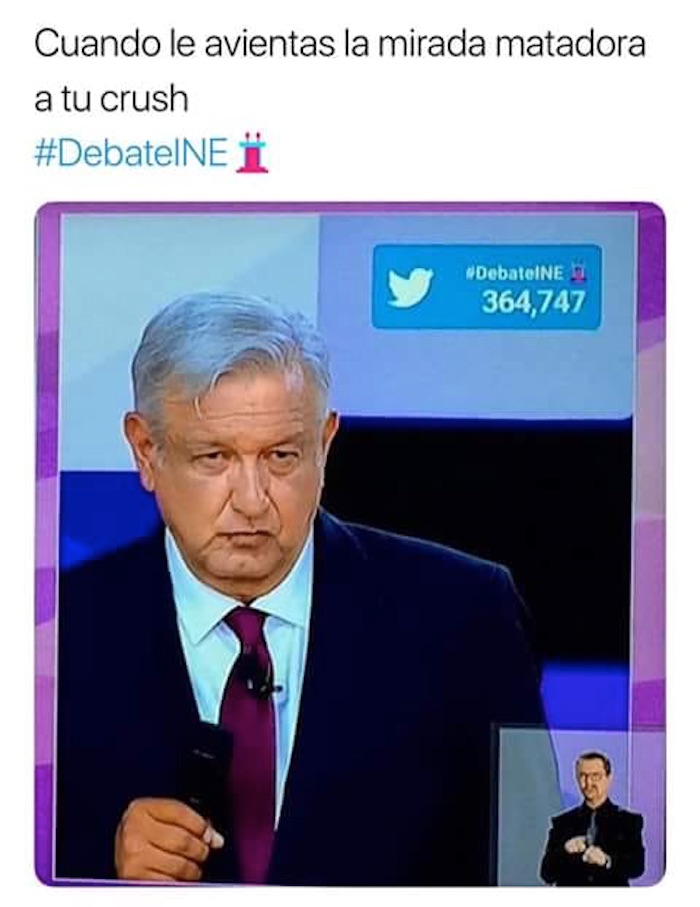 López Obrador fue el candidato preferido de los usuarios para protagonizar memes debido a sus respuestas y a la manera en que se dirigía a los otros contendientes.