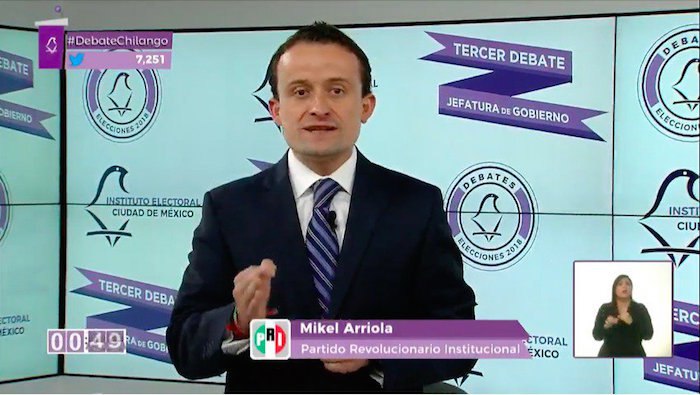 Mariana Boy, más adelante en el debate –en ese primer tramo–, una sorpresa: “No puedo dejar de denunciar que cuando Mikel Arriola fue director general del IMSS no pudo cumplir su promesa de abasto de medicinas”. También aclaró que el PRI y el Partido Verde no van juntos en la capital y acusó a Arriola de querer confundir al electorado. A nivel federal, PRI y Verde van juntos.