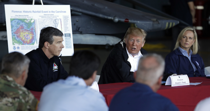 Estados Unidos/Ciudad de México, 20 de septiembre (RT/SinEmbargo).— Durante su visita a las zonas afectadas por el huracán "Florence" –que ha provocado al menos 37 muertes en tres estados de EU.–, el Presidente Donald Trump sostuvo con residentes de la ciudad de New Bern (Carolina del Norte) un intercambio que rápidamente ha empezado a circular en las redes sociales.