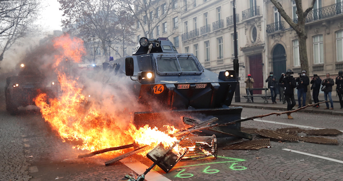 Los primeros choques entre fuerzas del orden y manifestantes, con cargas y lanzamientos de gases lacrimógenos, se produjeron ya a primera hora de la mañana en la avenida de los Campos Elíseos, que era el principal punto de concentración de los "chalecos amarillos".