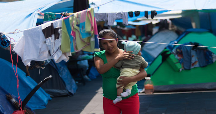 Ciudad de México, 20 de marzo (El Sur/SinEmbargo).–Frida Guadalupe duerme desde hace poco más de un mes en una casa de campaña a unos metros del Zócalo y a unos centímetros de las alcantarillas. Tiene siete años y, como ella, otros 80 niños y niñas viven en el campamento de desplazados guerrerenses, quienes –luego de huir de la violencia de la delincuencia organizada que ha azotado los municipios de Zitlala, Leonardo Bravo y Heliodoro Castillo– se instalaron frente a Palacio Nacional para exigir que los grupos criminales sean replegados y puedan volver a sus comunidades.