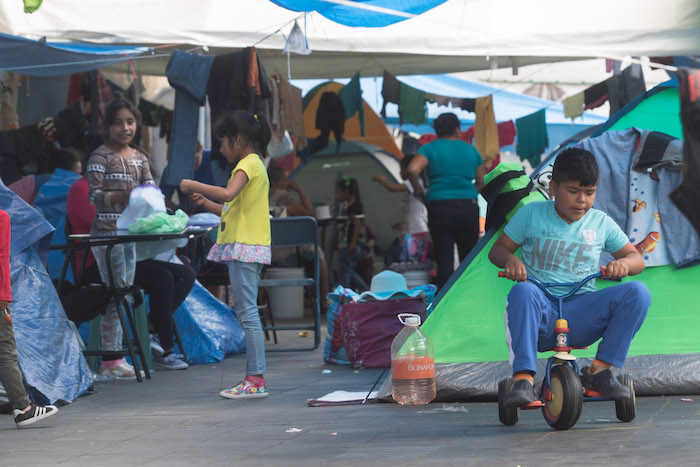 Ajenos a las miles de personas que transitan por el Zócalo de Ciudad de México y sus alrededores, siempre vigilados por las cuatro o cinco personas de la comunidad designadas para hacer guardias durante el día y la noche, a toda hora es posible ver enjambres de niñas y niños jugando al trompo o a la pelota entre las colchonetas.