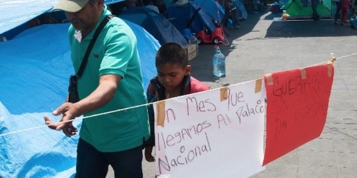 Los desplazados cumplieron el domingo un mes en plantón afuera del Palacio Nacional con la demanda de una audiencia con el presidente Andrés Manuel López Obrador, sin que la haya concedido.