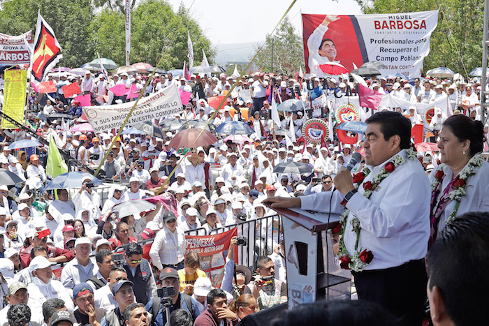 Ciudad de México, 2 de junio (SinEmbargo).– El estado de Puebla dejó de ser blanquiazul después de ocho años de una alternancia panista en el Gobierno. Miguel Barbosa Huerta, candidato del partido Movimiento de Regeneración Nacional (Morena), se perfila como el triunfador de las elecciones extraordinarias, con un rango de entre 42.6 y 45.4 por ciento de las preferencias, de acuerdo con el conteo rápido del Instituto Nacional Electoral (INE).