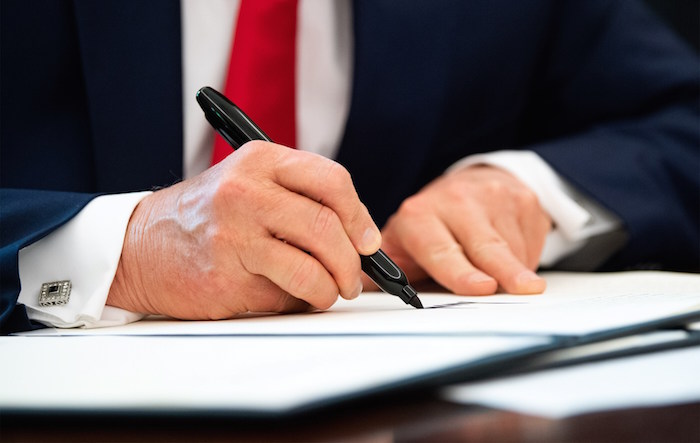 En el Despacho Oval, Trump firmó un decreto para imponer sanciones que, prometió, "negarán al líder supremo, su oficina y a aquellos más cercanos a él el acceso a recursos financieros clave".