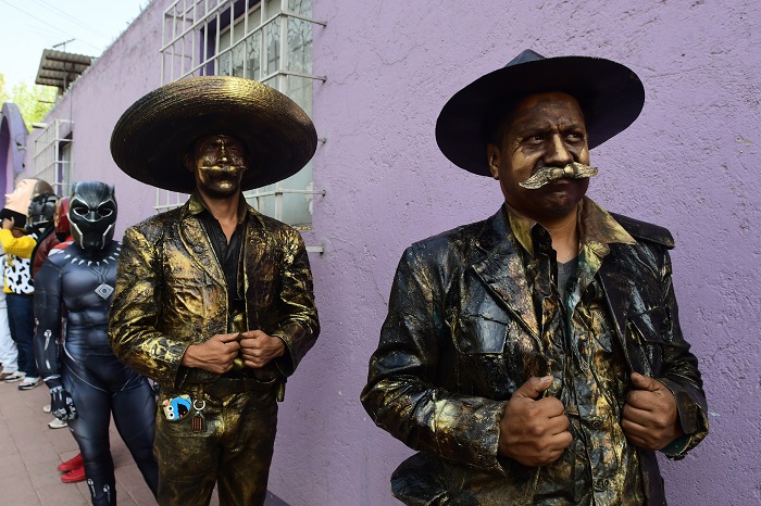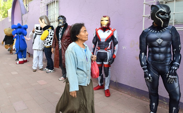 México, 16 de abril (EFE).- Artistas callejeros representando a Supermán, el Joker o Miguel, el protagonista de Coco y decenas de otras estatuas humanas y músicos se reunieron este jueves en la Ciudad de México para recibir algunos alimentos para enfrentar la pandemia de COVID-19, que los ha dejado sin trabajo.