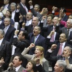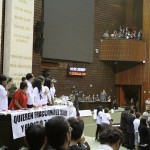 Ante la toma de la tribuna por parte de un centenar de legisladores de izquierda, la Presidencia de la Mesa Directiva, encabezada por Jesús Murillo Karam, dirigió la sesión desde un balcón y las posturas de las bancadas se fijaron desde las curules.