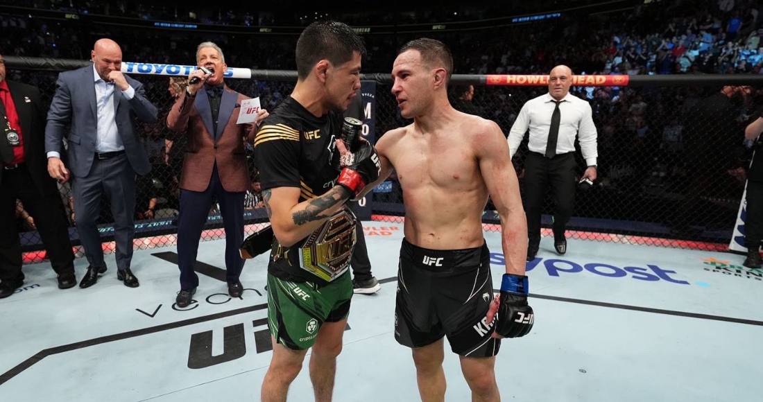 El combate se mantuvo en equilibrio, con ambos peleadores aguantando los embates y esperando el momento oportuno para buscar el nocaut. Sin embargo, la pelea se trasladó al piso, donde finalmente Brandon Moreno, conocido como The Assassin Baby, logró imponerse en el quinto round. La victoria, sin embargo, llegó por decisión de los jueces.