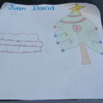 La profesora saca de su carpeta los últimos dibujos. Son dos cartoncillos que elaboraron los hijos del carpintero desaparecido. En uno de ellos se observa una gran estrella dorada que sonríe mientras corona un pino navideño. Del árbol cuelgan 12 esferas regordetas de colores azul, rojo, verde y amarillo. En medio destaca una enorme flor de Nochebuena y en la parte superior izquierda dice el nombre del autor: Juan David.