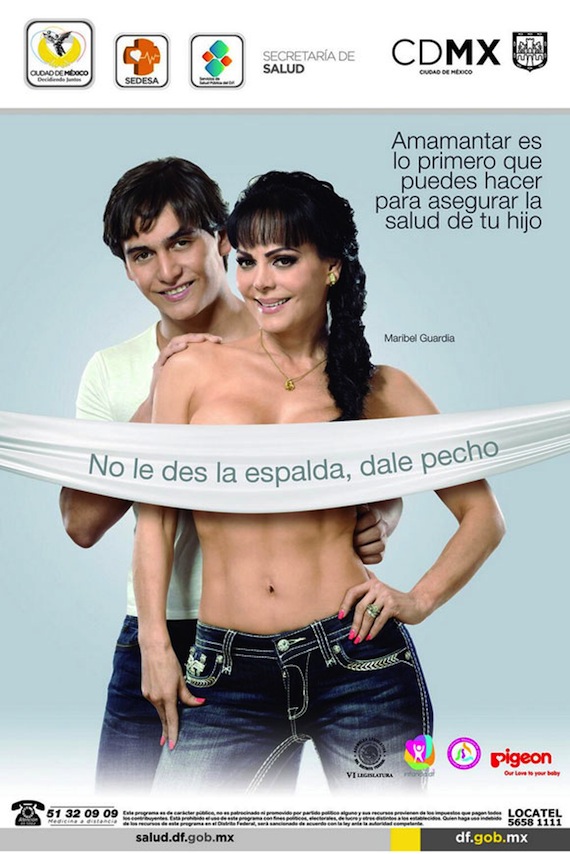 El día de ayer el Jefe de Gobierno del Distrito Federal, Miguel Ángel Mancera Espinosa lanzó la campaña e inauguró centros de atención a madres capitalinas. En la iniciativa participaron las actrices Cecilia Galiano, Maribel Guardia y Camila Sodi, con el torso desnudo y tapadas con una manta que dice “No le des la espalda, dale pecho.”