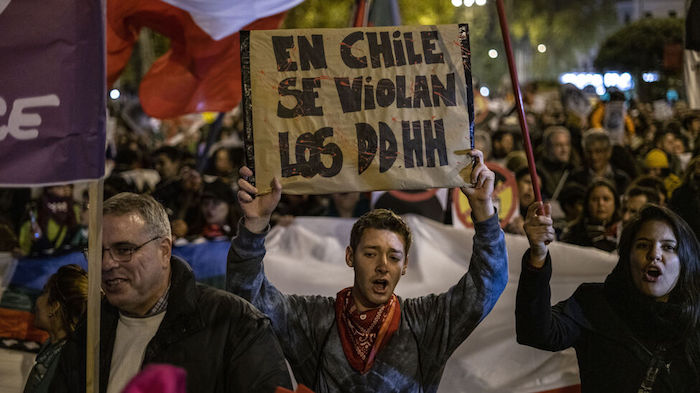 "Piñera, cobarde, tus manos tienen sangre", se escuchaba a lo largo de la manifestación. Foto: Olmo Calvo, ElDiarioES