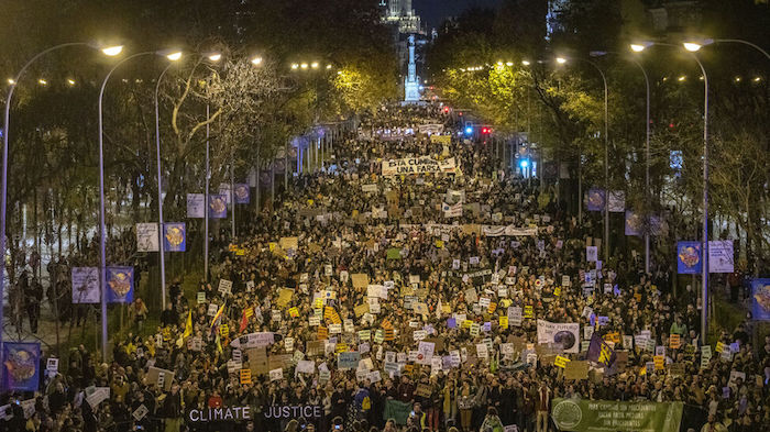 Madrid, 7 de diciembre (ElDiarioEs).- La marcha en la capital española transcurrió sin incidentes graves y con un gran protagonismo de Chile, país en el que se iba a celebrar la COP25 y en el que también se ha llevado a cabo una manifestación por la crisis climática.