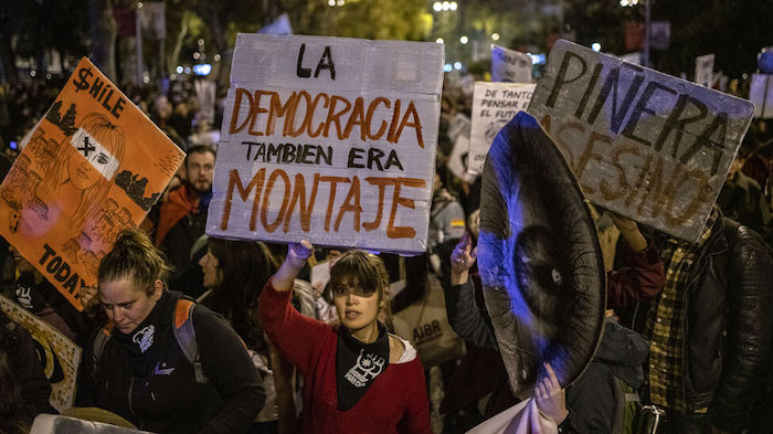 En la Marcha ha habido gran protagonismo de Chile, donde se iba a celebrar la COP25. Foto: Olmo Calvo, ElDiarioES