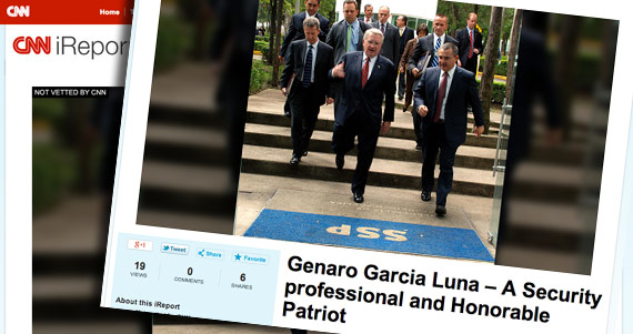 Ciudad de México, 23 de mayo (SinEmbargo).– “Genaro García Luna, un patriota honorable y un profesional de la seguridad”. Eso dice este día la poderosa cadena norteamericana CNN en su página web, en el espacio iReport. La nota es firmada por un supuesto “Shawn Paul”, quien pone como referencia un blog llamado Mexican Political News, dedicado a defender al ex Secretario de Seguridad Pública federal (SSP).