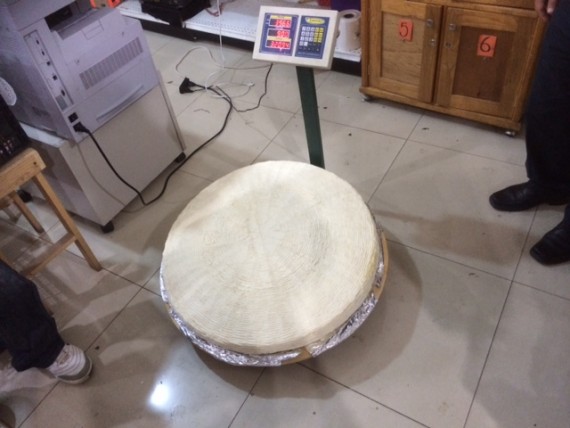 El producto lácteo que intenta ganarse el título del “queso panela más grande del mundo” pesó poco más de 32 kilogramos y midió cerca de 80 centímetros de diámetro, mientras que su grosor irregular osciló entre los 7 y 9 centímetros.