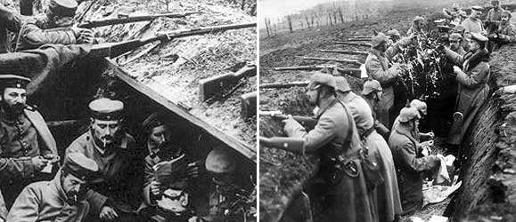En esa última guerra de trincheras, los soldados de uno y otro bando solían estar separados por apenas unos metros. No sólo podían intuirse, sino que podían perfectamente verse… y oírse.