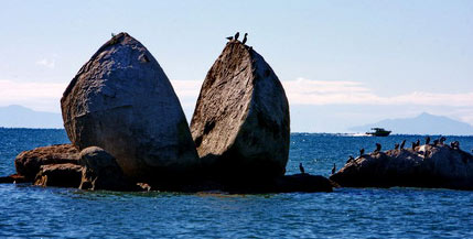 Esta extraordinaria e interesante formación rocosa localizada en la Isla Sur de Nueva Zelanda hace honor a su nombre pues sí parece una manzana partida. Manzana partida o Split Apple Rock, en inglés, está cerca de Marahau, en el Parque Nacional Abel Tasman, en el distrito de Tasmania.