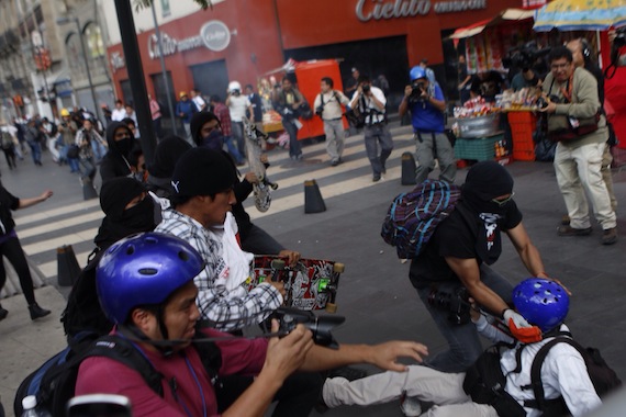 Ciudad de México 12 de junio (SinEmbargo).– La organización Fotoreporteros MX exigió al Estado mexicano la reparación del daño ocasionado el pasado 10 de junio a los periodistas París Martínez, Néstor Negrete, Luis Castillo, Leonardo Casas y Marco Ugarte, quienes fueron agredidos por jóvenes identificados como "anarquistas" durante la marcha conmemorativa del "Halconazo".