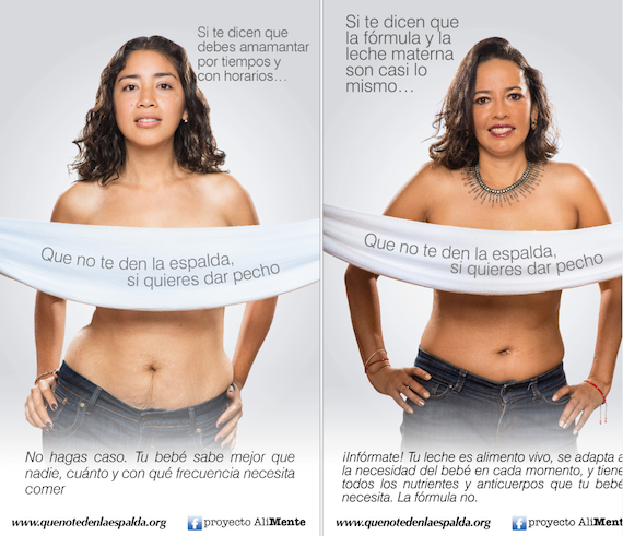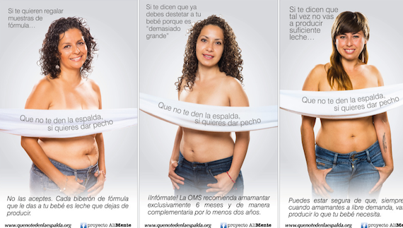 La campaña “Que no te den la espalda si quieres dar pecho” es fruto del trabajo comunitario y voluntario de un grupo de mujeres en Puebla, Cholula y el Distrito Federal, impulsado por Proyecto AliMente.