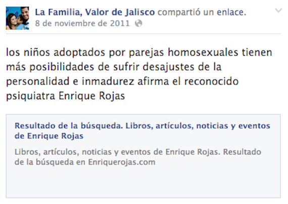 En una rueda de prensa el 27 de octubre de 2011, explicó que su iniciativa defendía que en Jalisco no pudieran adoptar las parejas del mismo sexo que hayan contraído matrimonio en otro estado.