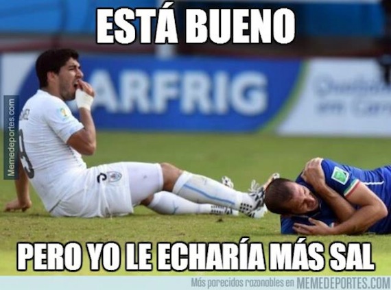 Minutos después de que concluyó el partido Twitter se inundó de memes acerca de la mordida de Suárez a Chiellini.