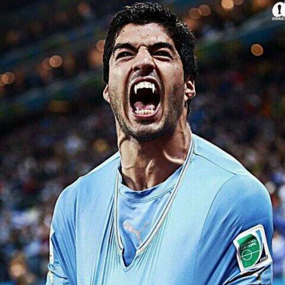 En un lance en los minutos finales del partido, el delantero uruguayo apoyó su cabeza sobre el hombro de Chiellini y pareció morder al defensa. Instantes después Diego Godín marcaría de cabeza el gol de la victoria.