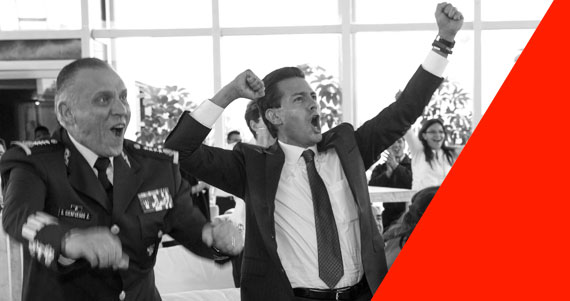 En el verano de 2014 ya no hay ningún símbolo que discrepe de esa dramaturgia que es esa disciplina. Ya son las tres de la tarde del 23 de junio y está a punto el partido México-Croacia. El Tri llega invicto, después de dos encuentros; uno con Camerún (1-0) y el otro con el potente Brasil (0-0, que coronó al portero Guillermo Ochoa como héroe nacional). En su sillón blanco, puesto para su persona en el Hangar Presidencial, Enrique Peña Nieto le dice al Secretario de la Defensa Nacional (Sedena), Salvador Cienfuegos Zepeda, que ve “medio tensos” a los dos equipos.
